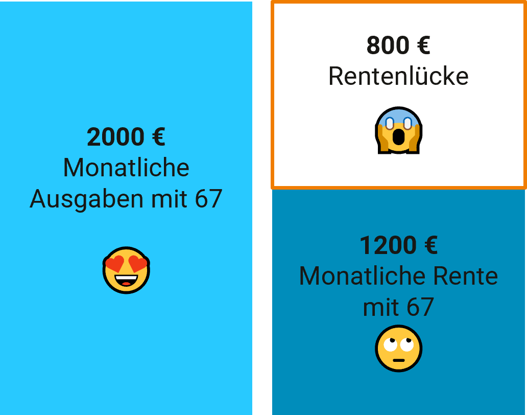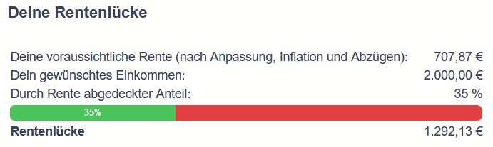 Die Rentenlücke ist die Differenz aus dem benötigten Geldbetrag pro Monat und der Rente nach den Anpassungen.