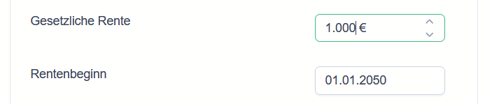 Gib je nach Situation deine Zusatzrenten in die entsprechenden Felder ein. Dabei solltest du den Betrag verwenden, der dir vom Anbieter der Rente prognostiziert wird. Je nach Anbieter kann dies unterschiedlich ausgestaltet sein, so dass ich dir hier keine genauere Hilfestellung leisten kann. (Wenn du mehrere Zusatzrenten hast, musst du sie selbst zusammenrechnen.)